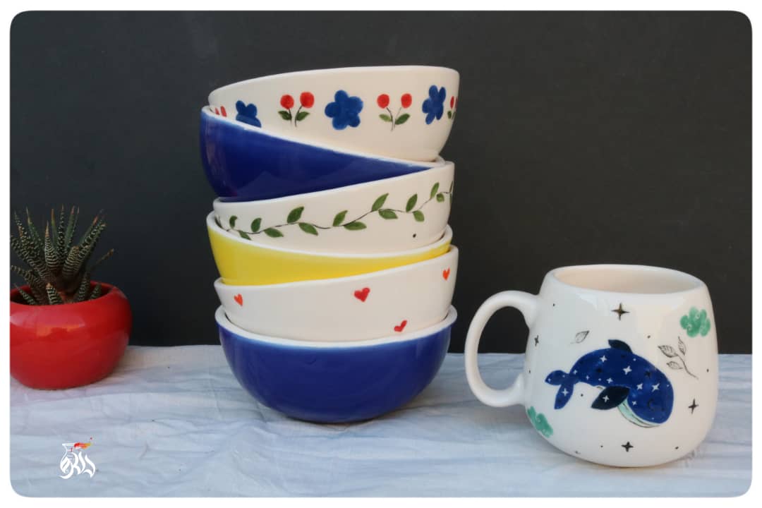 ست پذیرایی سرامیکی دست‌ساز طرح «آواز وال» (شامل بشقاب، کاسه و ماگ)