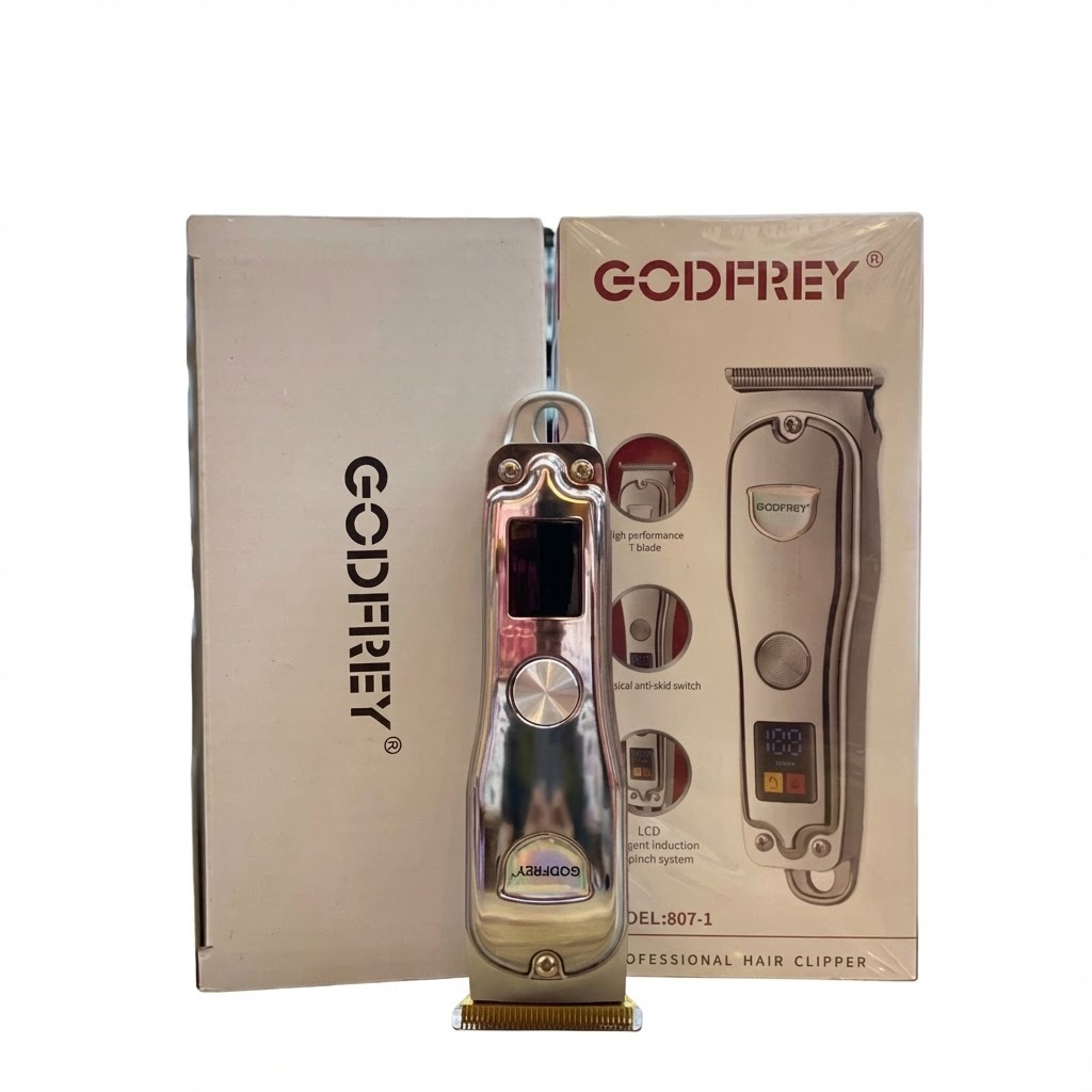 ماشین اصلاح حرفهای گادفری مدل 807-1 با بدنه تمام فلزی و تیغههای T-شکل تیز، بهترین انتخاب برای اصلاح دقیق ریش و خطگیری گردن است. این دستگاه دارای نمایشگر دیجیتال برای نمایش درصد شارژ بوده و با طراحی خوشدست خود، تجربهای راحت از اصلاح را فراهم میکند.